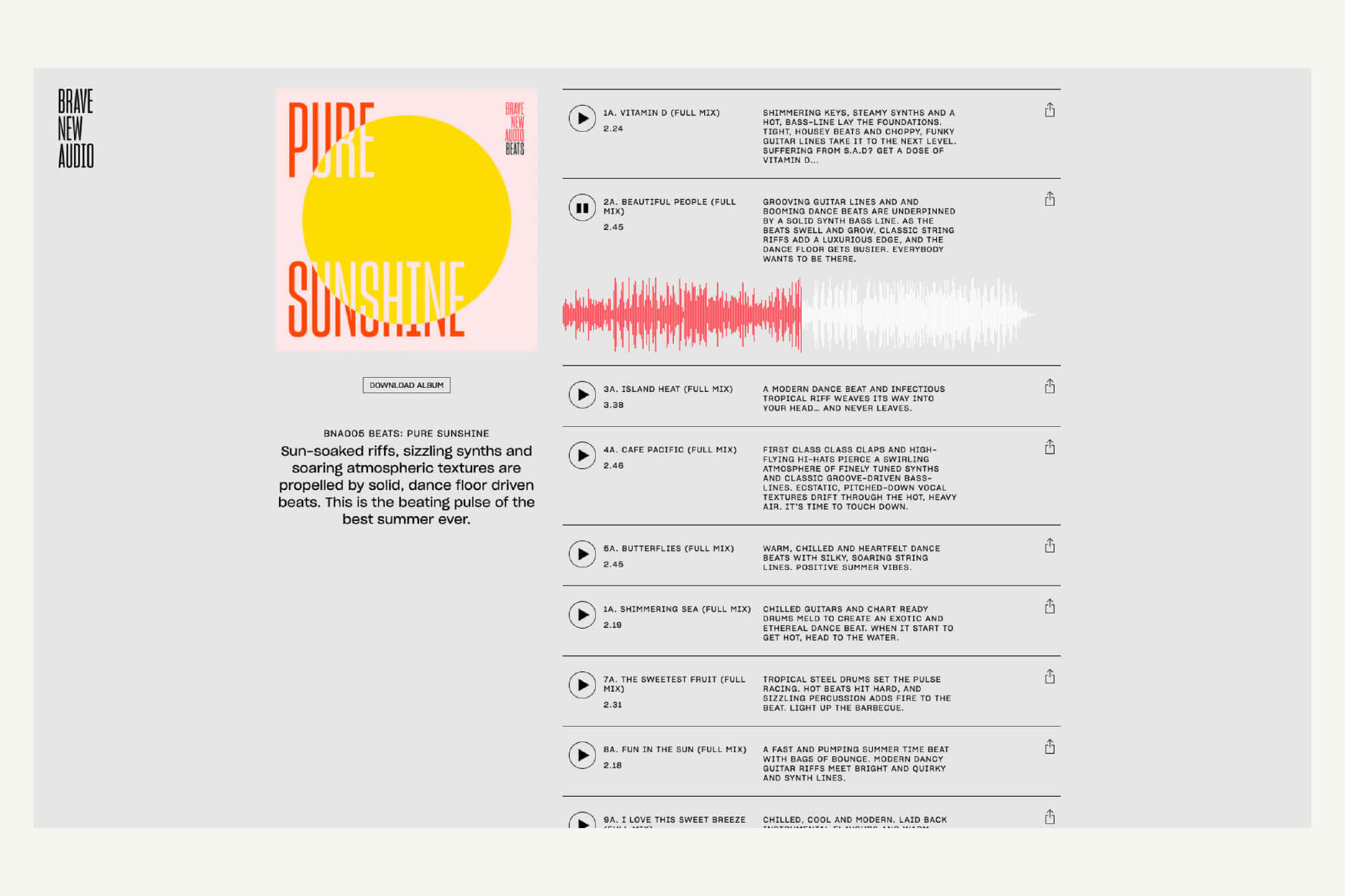 Brave New Audio are a high-end sync label and studio creating music for advertising, television, digital & film.