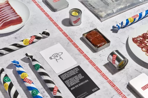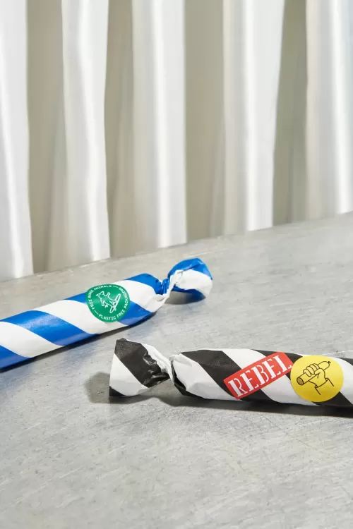 From the beginning we intended to wrap the products in as little packaging as possible. We sourced 100% plastic free, compostable and biodegradable packaging for the elements that were needed. We designed a sticker system that allowed Rebel to create small batches of specific products, without the need for large and costly print runs.