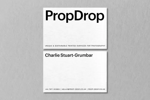 PropDrop needed a brand identity that reflected it's high end product and appealed to those working in the arts industry. The monogram is a playful take on the companies backdrops and is instantly recogniseable to the PropDrop brand. Keeping the colour palette neutral allows the surfaces the company creates to really pop out whilst enhancing the feeling of refinement and reliability their clients are looking for.